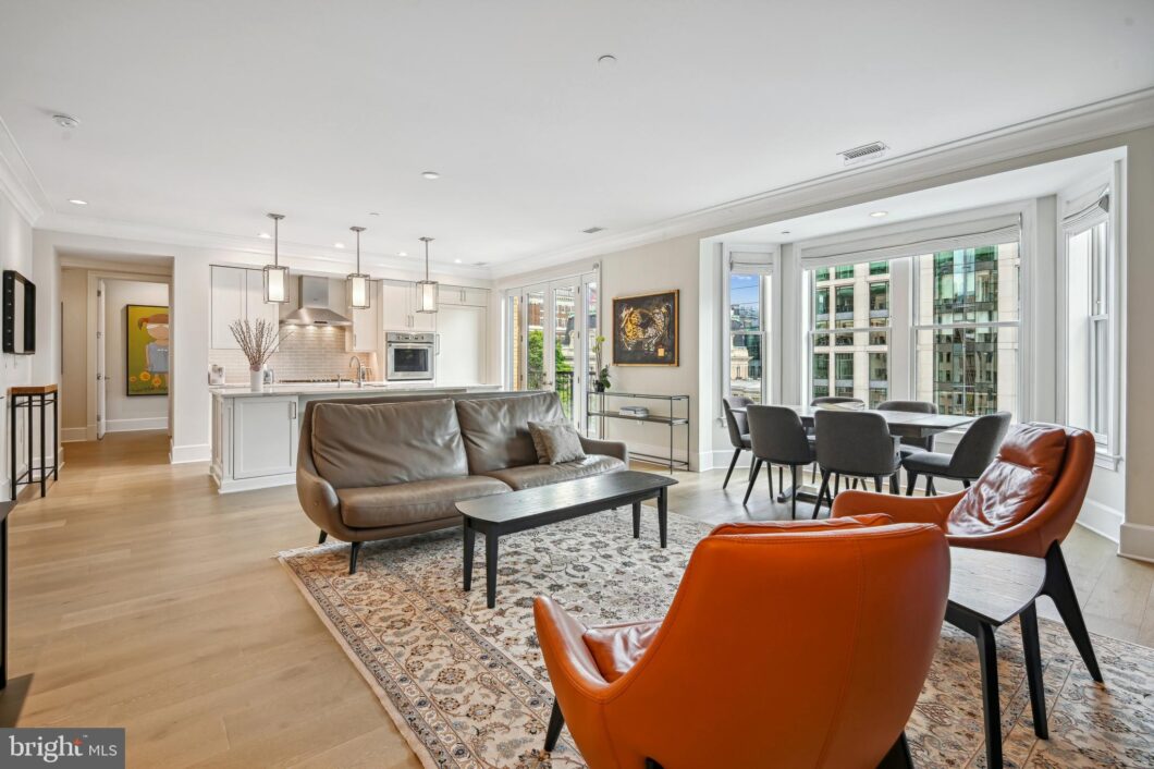 Discover the epitome of luxury living in your refined residence at The Adele, just three blocks from the White House. This full-service condominium, with only 14 exclusive residences, is a stunning creation by architect Jane Nelson and designer Michael Hampton. As part of the prestigious Estate Collection, this residence features 2 bedrooms, 2.5 baths, and a private parking. The home is graced with expansive windows, soaring ceilings, wide-plank oak floors, deep crown molding, and designer lighting, all contributing to an extraordinary urban living experience. The open chef’s kitchen is a centerpiece, showcasing Calcutta quartz countertops, Thermador appliances, a wine cooler, and a breakfast bar for casual dining. Both bedrooms are ensuite, each with a luxurious marble bath adorned with Ann Sacks tile and Waterworks fixtures. The primary bath is especially opulent, featuring heated floors, a generous soaking tub, and a spacious glass-enclosed shower. The primary suite also offers ample closet space. Additional features of this exceptional home include a marble powder room, stacked washer and dryer, and reserved parking space. Residents of The Adele enjoy a staffed lobby with an outstanding concierge service and access to a beautifully landscaped rooftop deck, complete with a gas fireplace, catering kitchen, and wet bar, all offering stunning views of the Washington Monument. Living at The Adele places you in the vibrant heart of Washington, DC, just steps away from the business corridor, premier shopping and dining, and a rich array of cultural attractions. The newly opened Midtown Center, just a block away, boasts renowned restaurants such as Philotimo, led by Michelin-star chef Nicholas Stefanelli, and Dauphine’s, helmed by chef Kyle Bailey, SHOTO, and Italian restaurant named Grazie Nonna.